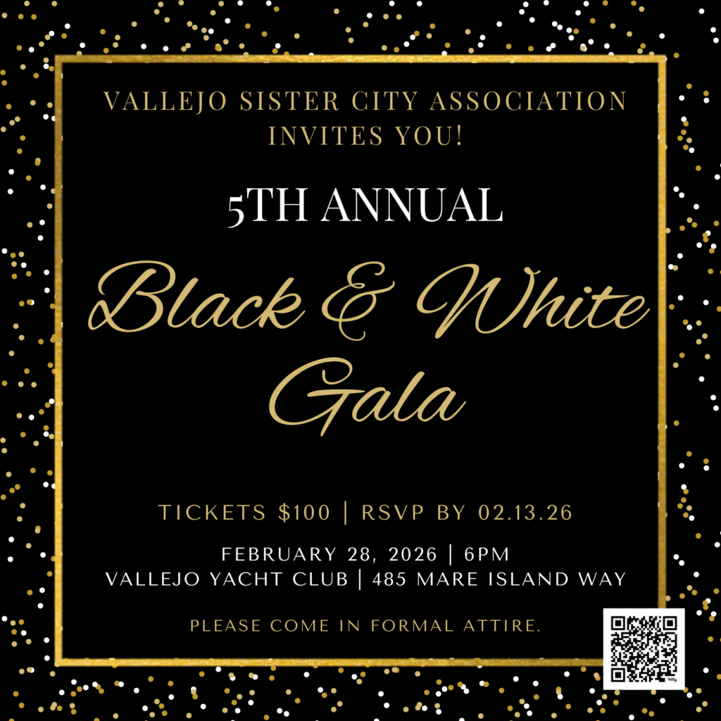 Vallejo, CA — The Vallejo Sister City Association (VSCA) is set to host one of its most anticipated fundraising events of the year: the 5th Annual Black & White Gala, taking place on Saturday, February 28, 2026, at 6:00 PM at the historic Vallejo Yacht Club.